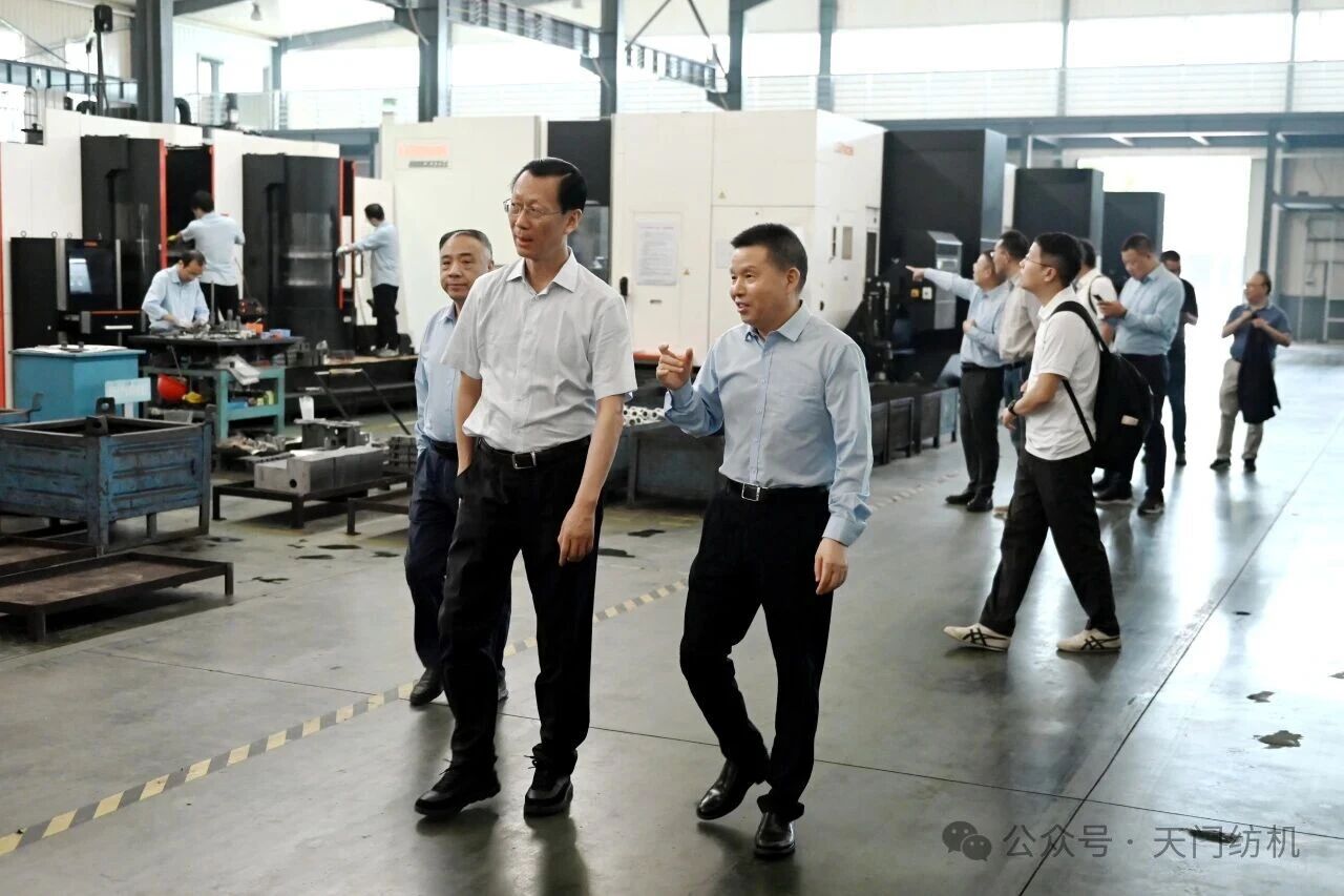 潘雪平董事長(zhǎng)一行在沈方勇董事長(zhǎng)的陪同下,深入車(chē)間一線,實(shí)地感受了天門(mén)紡機(jī)繁忙的生產(chǎn)現(xiàn)場(chǎng)以及火熱的“智慧工廠”項(xiàng)目施工現(xiàn)場(chǎng),了解到了公司在智能化改造和數(shù)字化轉(zhuǎn)型方面的最新成果。沈董事長(zhǎng)講解了公司產(chǎn)品的特點(diǎn)、特色,并就TM系列并條機(jī)的市場(chǎng)行情進(jìn)行了重點(diǎn)分析和介紹。