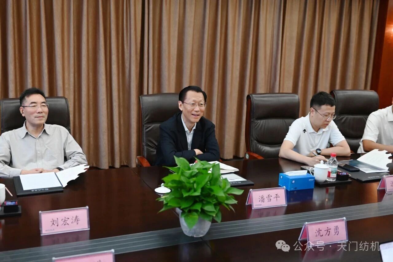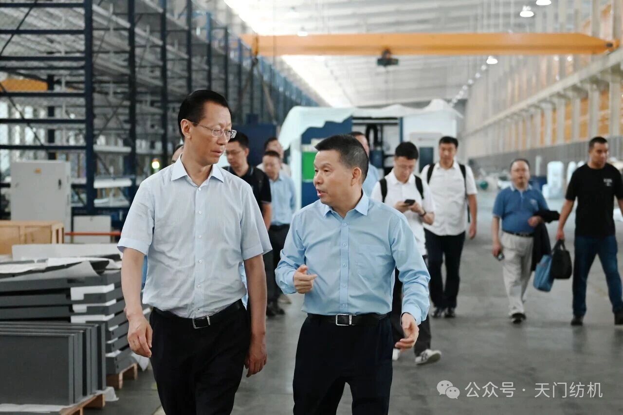 2025年9月27日,卓郎智能技術(shù)股份有限公司董事長(zhǎng)潘雪平一行7人蒞臨天門(mén)紡機(jī)參觀交流,公司董事長(zhǎng)沈方勇予以熱情接待。雙方圍繞紡織行業(yè)發(fā)展形勢(shì)及合作項(xiàng)目等議題進(jìn)行了深入交流。