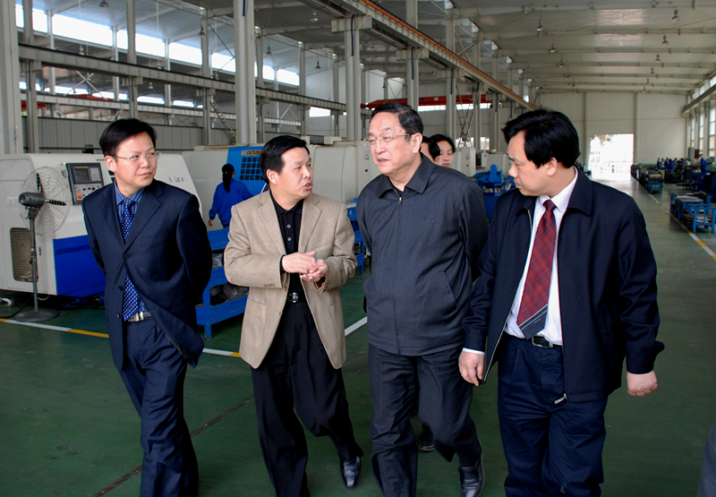 4月5日,中共中央政治局委員、湖北省委書記俞正聲,在天門市委書記別必雄,市委副書記、市長(zhǎng)張愛國和天門紡織機(jī)械有限公司總經(jīng)理沈方勇的陪同下,興致勃勃地來到天門紡織機(jī)械有限公司考察。俞正聲一面深入生產(chǎn)車間視察,一面了解公司發(fā)展情況??吹揭粭潡澑脑煲恍碌膹S房后,俞正聲滿意地說:“天門紡機(jī)每次來看都有很大的變化”。俞正聲得知公司生產(chǎn)的并條機(jī)占有國內(nèi)四成以上份額,并已和歐洲公司合作開發(fā)技術(shù)頂尖的新產(chǎn)品,高興地說:“希望你們發(fā)展得更好更快”。
