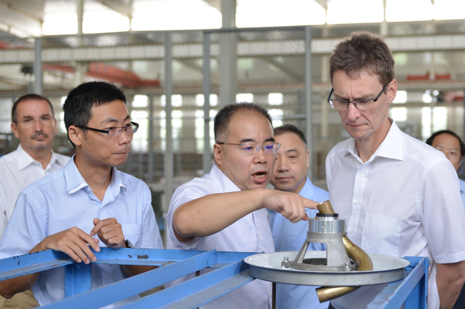 8月31日,卓郎集團產(chǎn)品戰(zhàn)略官Mr.Peter Trinkl一行5人對天門紡機進行了考察。公司總經(jīng)理焦倫進陪同卓郎客人參觀了公司生產(chǎn)現(xiàn)場及產(chǎn)品實驗中心,并從公司產(chǎn)品研發(fā)設計過程、產(chǎn)品制造及質(zhì)量控制、產(chǎn)品特點、發(fā)展目標等方面向卓郎客人作了詳細介紹。卓郎集團主要從事新型紡紗機械的設計、制造和銷售,他們此行的目的主要是為拓寬業(yè)務,與天門紡機洽談合作事宜。在考察期間,Mr.Peter Trinkl等客人對公司的生產(chǎn)現(xiàn)場、管理水平及企業(yè)文化贊不絕口,當天雙方就簽訂了10臺TMFD81S并條機合同,相信后期的合作會有更多的驚喜。