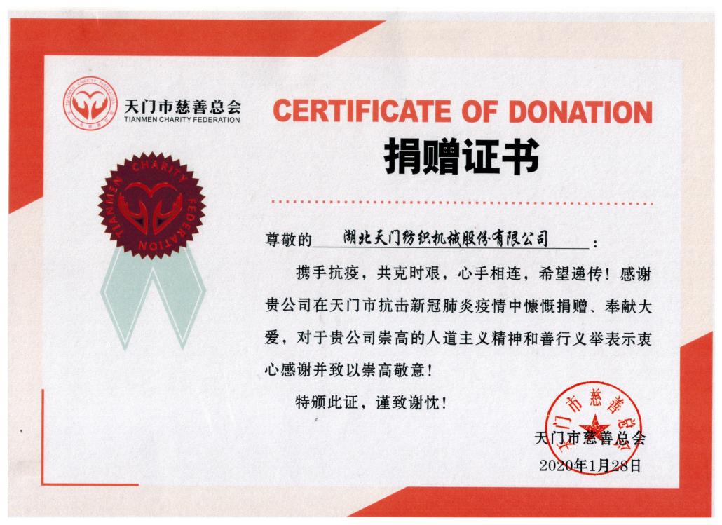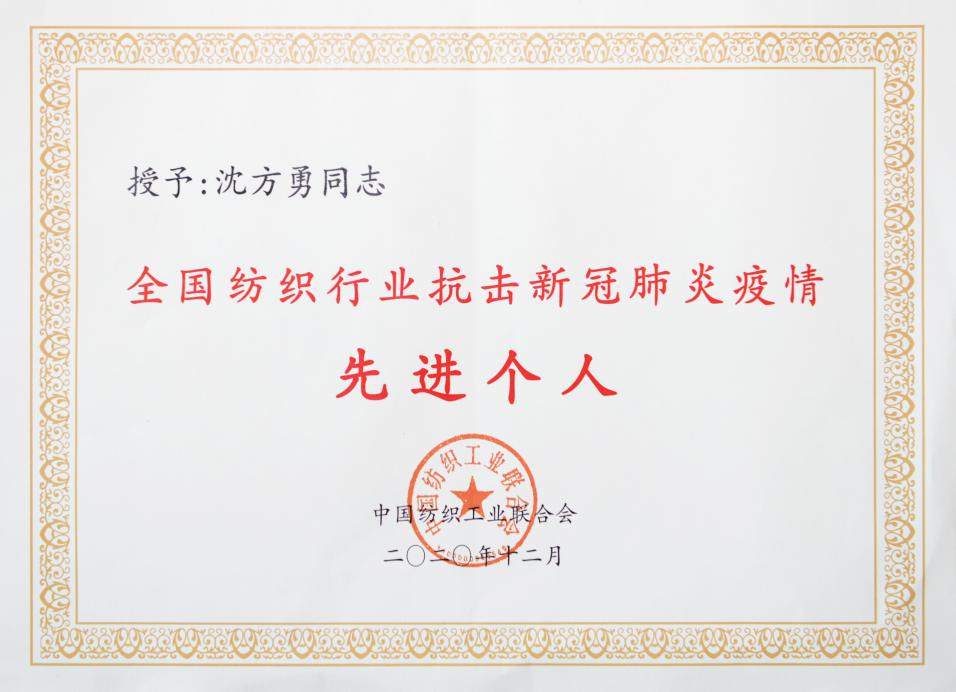 近日,中國紡織工業(yè)聯(lián)合會下發(fā)《關(guān)于表彰全國紡織行業(yè)抗擊新冠肺炎疫情先進(jìn)集體和先進(jìn)個人的決定》,天門紡機董事長沈方勇獲評“全國紡織行業(yè)抗擊新冠肺炎疫情先進(jìn)個人”。