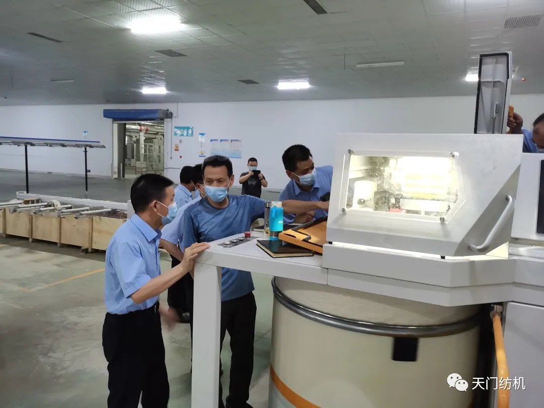 天門紡機“全球首款超大卷裝雙眼高速自調(diào)勻整并條機”—TM19自6月份上海展會首次亮相后,已布點在不同客戶處并線試紡3月有余。為了解該機并線后的真實使用情況,9月18日,天門紡機董事長沈方勇、總經(jīng)理焦倫進帶領(lǐng)技術(shù)研發(fā)人員組成的TM19評估組,專程赴卓爾天龍紡織公司,現(xiàn)場考察實際使用情況,征求客戶意見建議。