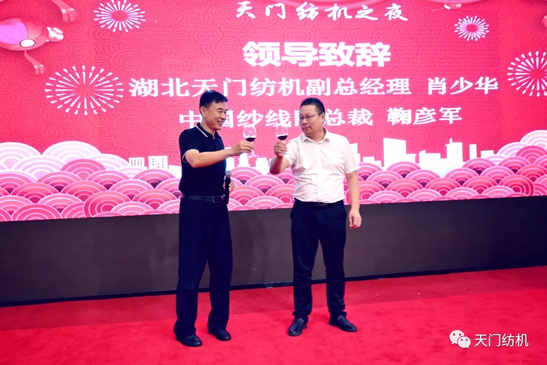 中國紗線網(wǎng)總裁鞠彥軍、天門紡機(jī)副總經(jīng)理肖少華祝酒致辭