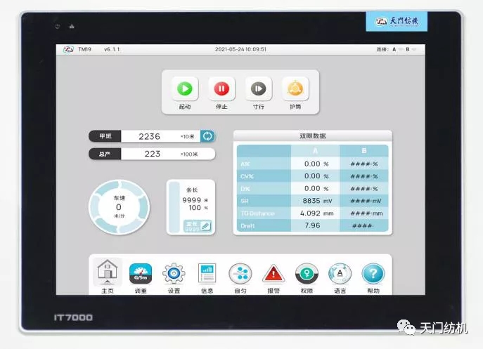 編者按:技術(shù)日新月異,紡機行業(yè)也不例外。天門紡機始終堅持用技術(shù)創(chuàng)新驅(qū)動產(chǎn)品提檔升級,并條機從純機械到簡單電器的運用,再到PLC、氣動、液壓、傳感器等的廣泛應(yīng)用,逐步發(fā)展為機電一體化;從引入計算機技術(shù)到云計算、大數(shù)據(jù)的應(yīng)用;從嵌入式軟件開發(fā)到數(shù)字孿生;從自動化向智能化的快速發(fā)展;從自調(diào)勻整技術(shù)的嘗試到全自調(diào)勻整技術(shù)的成熟普及等等,體現(xiàn)了技術(shù)的與時俱進(jìn)和產(chǎn)品的持續(xù)進(jìn)步,尤其在新一代T1系列并條機中引入新理念、新技術(shù)、新工藝,賦予了新產(chǎn)品更加旺盛的生命力,從而引領(lǐng)市場。