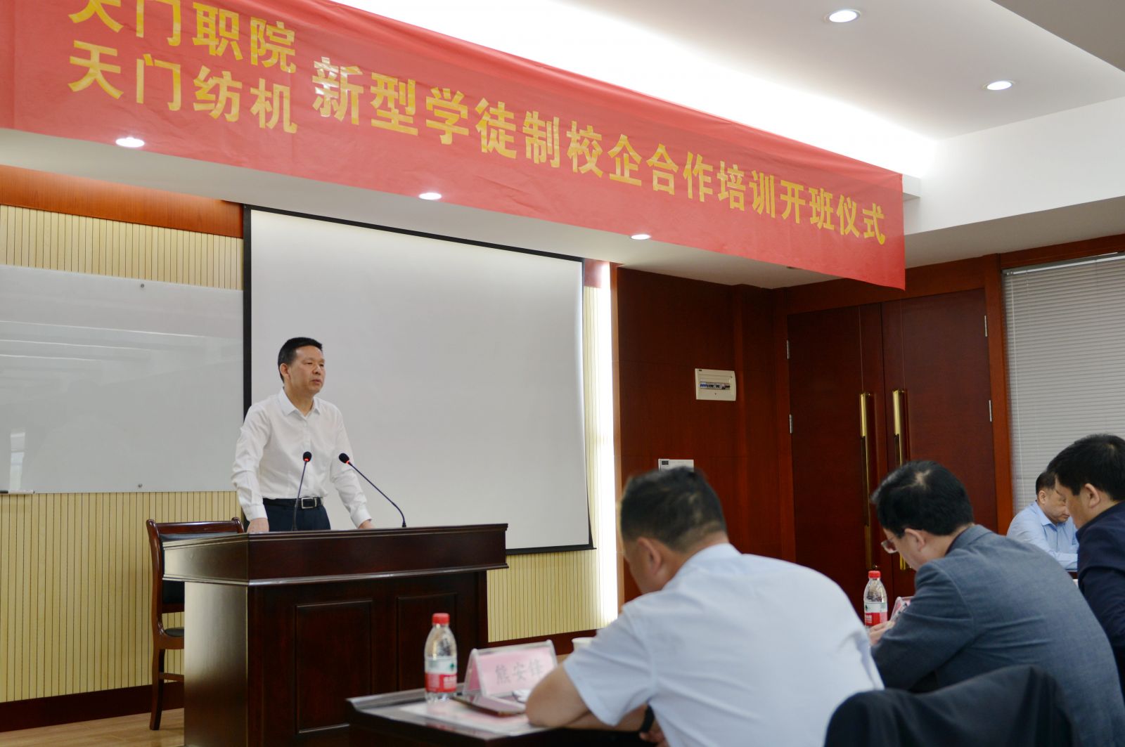 全國人大代表天門紡機(jī)董事長沈方勇在致辭中表達(dá)了對市委、市政府長期以來關(guān)心支持天門紡機(jī)發(fā)展的感激之情,并對高度重視人才工作、為企業(yè)引薦和培養(yǎng)人才的市人社局、市經(jīng)信局等職能部門表達(dá)了由衷地贊賞和誠摯地謝意。他從企業(yè)實施人才戰(zhàn)略、實現(xiàn)高質(zhì)量發(fā)展的角度出發(fā),闡明了企校聯(lián)合開展新型學(xué)徒制技能人才培訓(xùn)工作的必要性和重要性。同時,提了四點希望和要求:一是要把小事做大。培訓(xùn)工作在企業(yè)生產(chǎn)經(jīng)營中只能算是一件小事,但涉及人才培養(yǎng)、關(guān)乎企業(yè)創(chuàng)新發(fā)展卻是一件大事。因此,天門紡機(jī)與天門職院聯(lián)合開辦的新型學(xué)徒制技能人才培訓(xùn)一定要辦出特色,成為樣板,以便在全市推廣,擴(kuò)大覆蓋面,起到更大的示范引領(lǐng)作用;二是把大事做好。要精心組織準(zhǔn)備,落實教學(xué)方案;三是把好事做實。企校聯(lián)合辦學(xué)不是走秀,而是要實實在在開展工作,收到實效。對企業(yè)來說,實操比理論更重要;四是把實事做久。企業(yè)技能人才培訓(xùn)工作不是一朝一夕就能完成的事情,我們要以企校聯(lián)合培訓(xùn)為契機(jī),形成企業(yè)人才培訓(xùn)長效機(jī)制,久久為功。