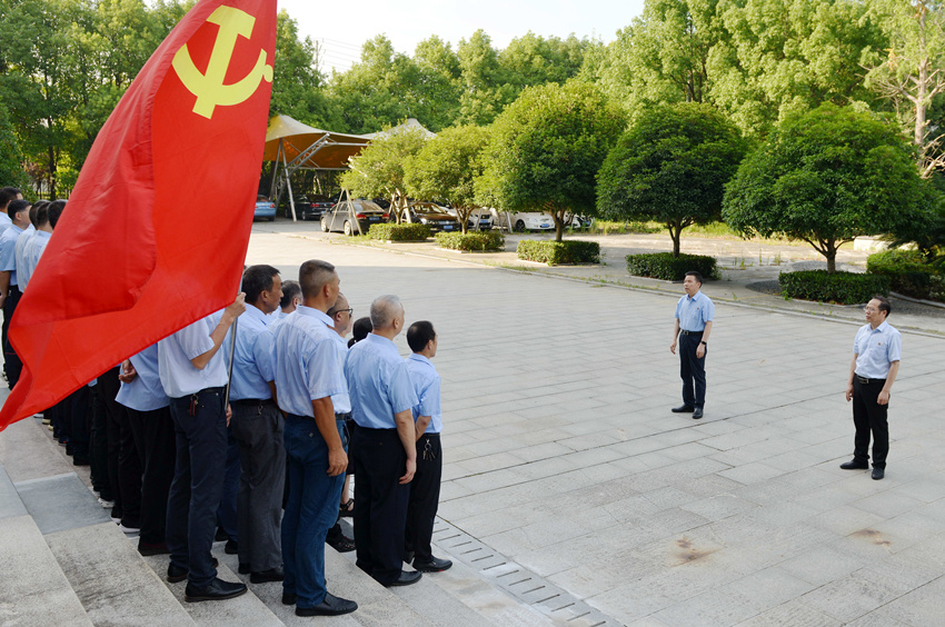 全國人大代表、天門紡機(jī)董事長沈方勇在黨員隊伍集結(jié)時激情致辭。他說,中國共產(chǎn)黨在嘉興南湖一艘紅船上誕生,從50多名黨員發(fā)展成為9000多萬名黨員的世界第一大執(zhí)政黨。百年來,中國共產(chǎn)黨書寫了一部堅守初心使命、應(yīng)對危局困境、經(jīng)受風(fēng)險考驗、戰(zhàn)勝困難挫折、開創(chuàng)民族復(fù)興偉業(yè)的奮斗史。作為一名共產(chǎn)黨員和天門紡機(jī)員工,我們要牢記黨的奮斗史,永葆青春活力,做先鋒模范,起戰(zhàn)斗堡壘作用,為企業(yè)發(fā)展、為建設(shè)富強(qiáng)民主和諧美麗社會主義現(xiàn)代化強(qiáng)國貢獻(xiàn)應(yīng)有的力量。