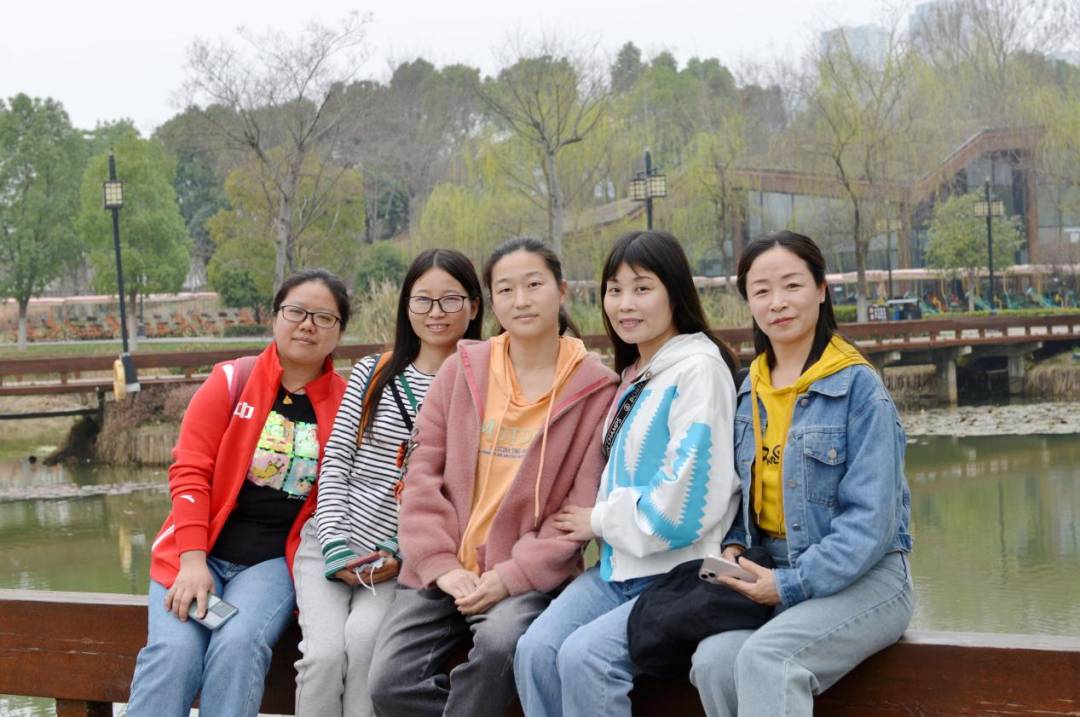 伴隨徐徐春風(fēng),“娘子軍”踏上了旅程。大巴上,大家一起玩游戲,唱車載KTV,一路洋溢著歡聲笑語,轉(zhuǎn)眼便抵達(dá)第一站——后官湖國家濕地公園。