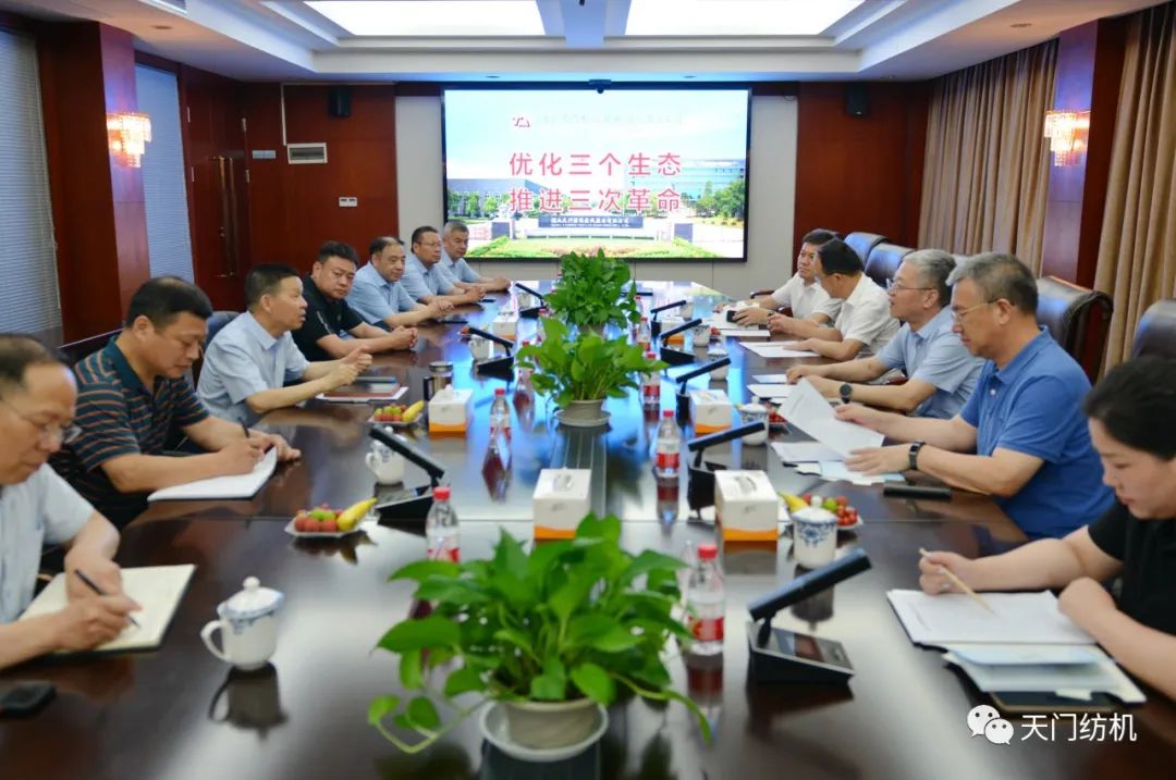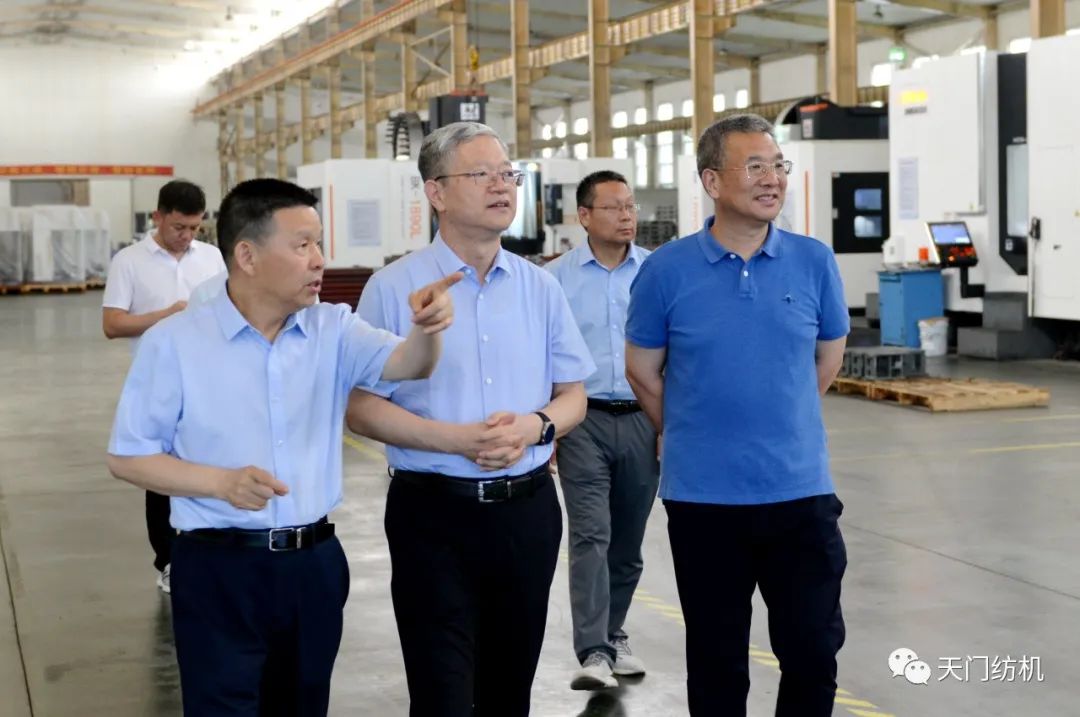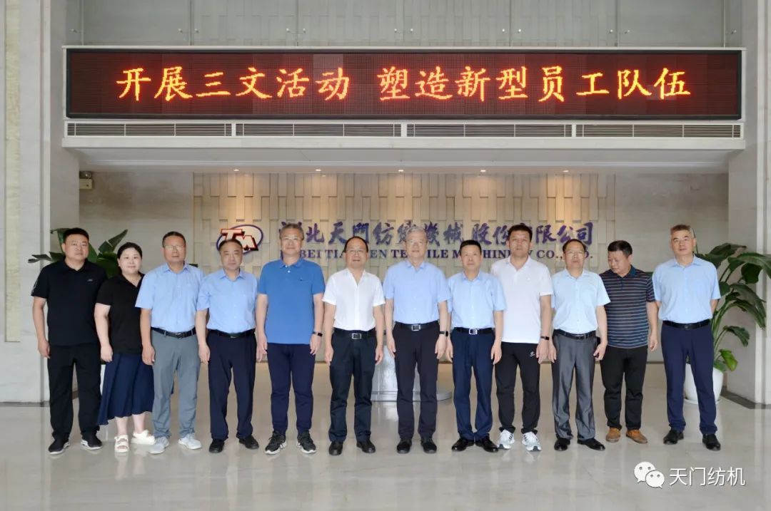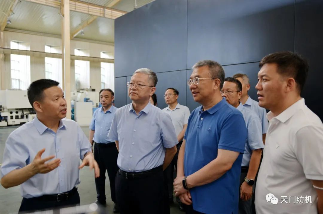 2023年6月27日下午,中國紡織工業(yè)聯合會秘書長夏令敏,中國紡織工業(yè)聯合會流通分會副會長徐建華、秘書長王水元蒞臨天門紡機調研,湖北省經信廳副廳長周開斌、消費品工業(yè)處副處長鄧龍陪同調研。