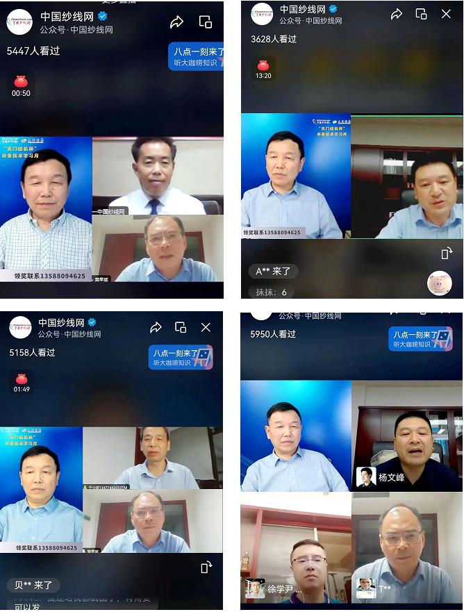 本次活動進(jìn)行了6場直播。其間,天門紡機(jī)副總經(jīng)理?xiàng)钗姆寰图徔椦b備的發(fā)展趨勢作了深度剖析,分享了并條機(jī)牽伸形式、傳動方式、換筒方式及自調(diào)勻整等方面的專業(yè)知識;天門紡機(jī)品控總監(jiān)樊早斌、售后服務(wù)中心主任于少波分別就并條機(jī)操作、工藝要求、維護(hù)保養(yǎng)、常見問題排查等方面的知識和經(jīng)驗(yàn)進(jìn)行了交流。線上學(xué)習(xí)氛圍濃厚,平均每場都有近6千人參加學(xué)習(xí),總計超3萬余人。