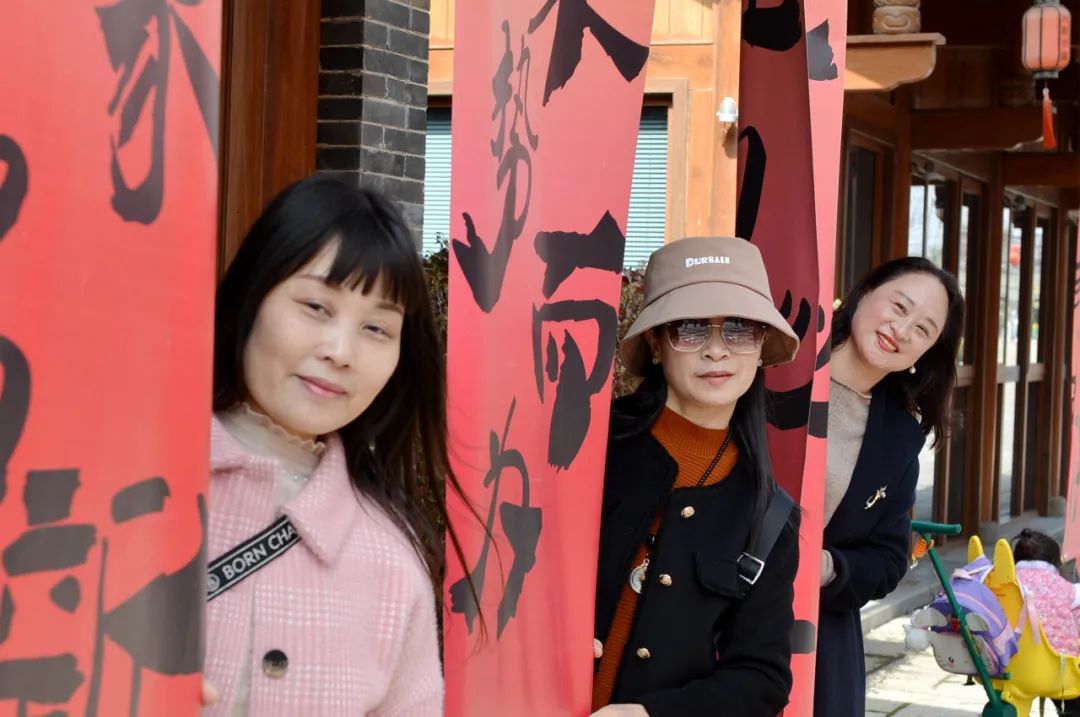游覽過程中,女工們有的參觀小鎮(zhèn)書院,了解當?shù)氐臍v史文化;有的在小銅人雕塑旁合影留念,定格美好時光;有的登上文昌閣遠眺,感受湖光山色。