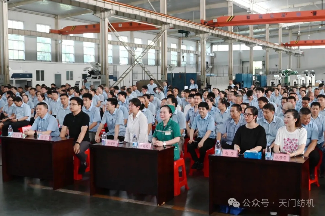 室外赤日炎炎,酷暑難當(dāng);室內(nèi)座無虛席,氣氛熱烈。2024年7月17日下午,天門紡機(jī)在生產(chǎn)現(xiàn)場組織了一場別開生面的健康知識及急救技能培訓(xùn)活動,天門市第一人民醫(yī)院的多位醫(yī)療專家應(yīng)邀來公司進(jìn)行健康知識講座和急救實操演示。