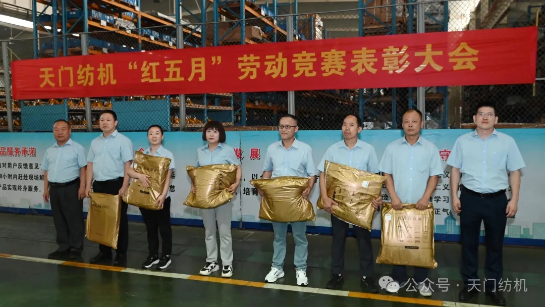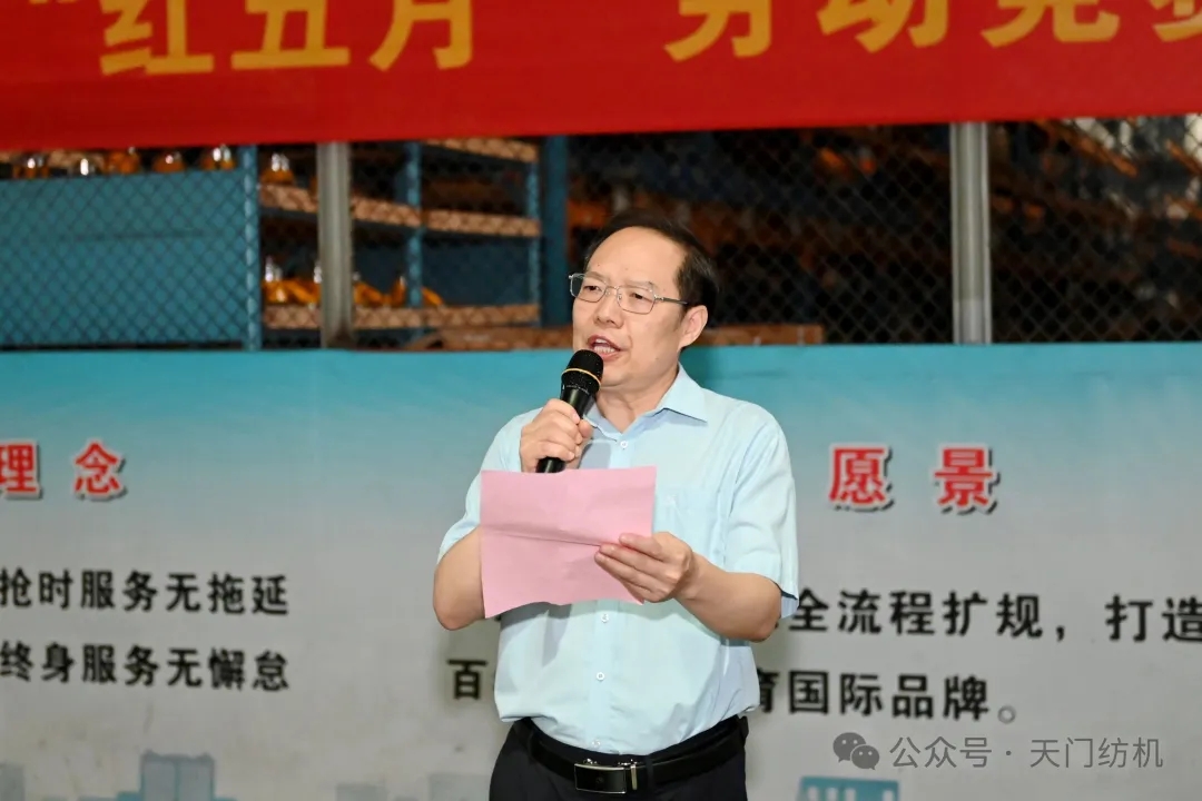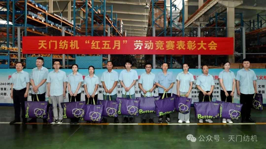 晨光微熹,映照勞動(dòng)者的身影。2025年6月27日早上8:00,天門紡機(jī)全體員工齊聚總裝配區(qū),舉行“紅五月”勞動(dòng)競賽表彰大會(huì),禮贊拼搏者,致敬奮斗人!